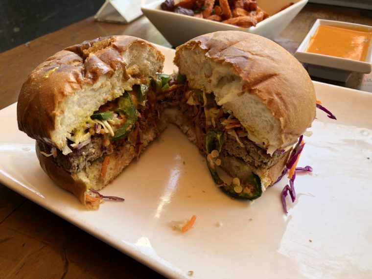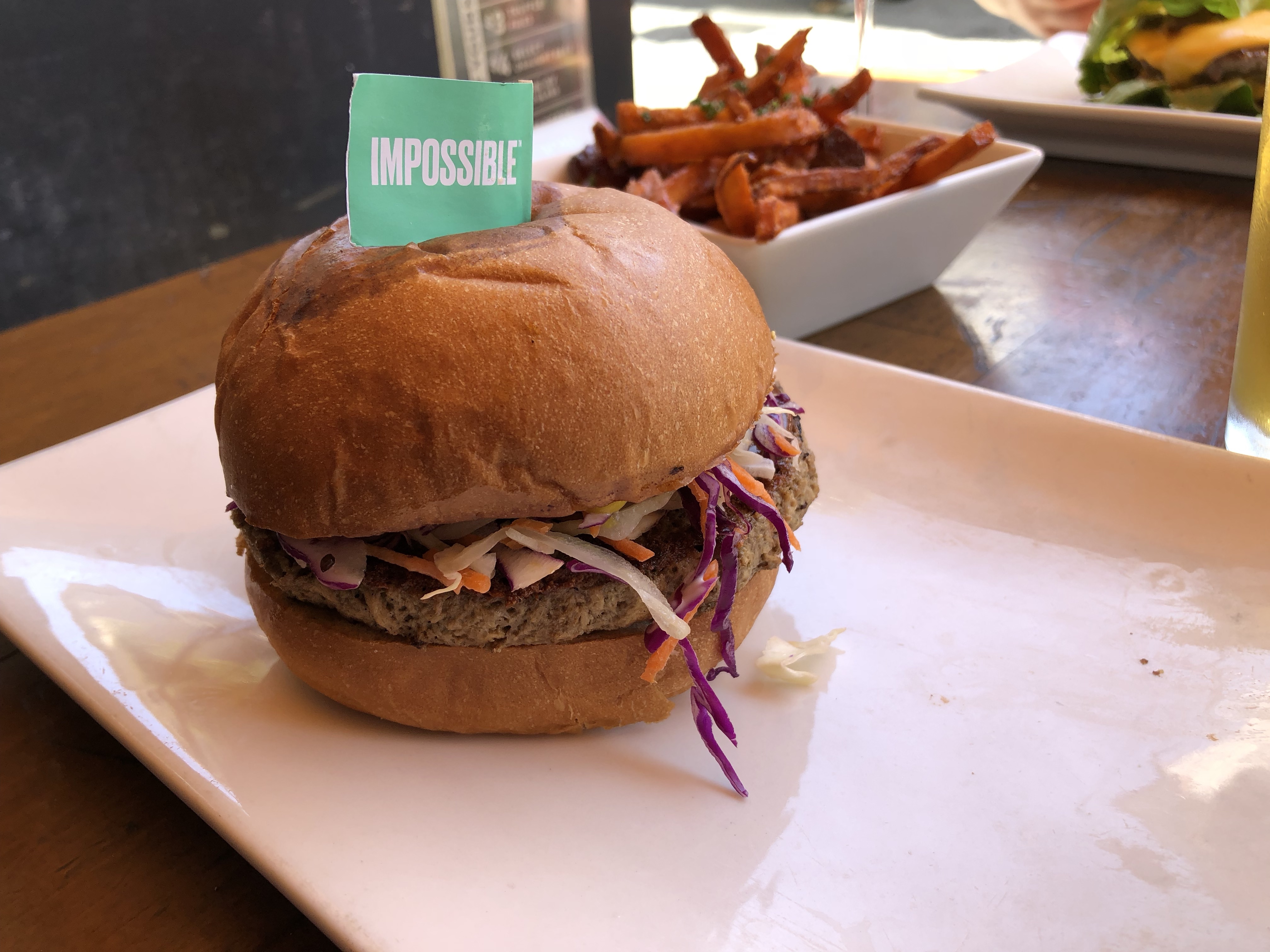 Golden Gaten jälkeen suunnattiin Umami burger -ravintolaan, jossa omana tavoitteena oli maistella Impossible burger. Tämä on siitä erikoinen burgeri, että pihvit ovat täysin kasvisproteiinista valmistettuja. Burgerit voi tilata halutessaan myös vegaanisena. Maku olikin erittäin hyvä ja tekstuuri pihveissä oli erittäin lähellä ”oikeaa” hampparipihviä.